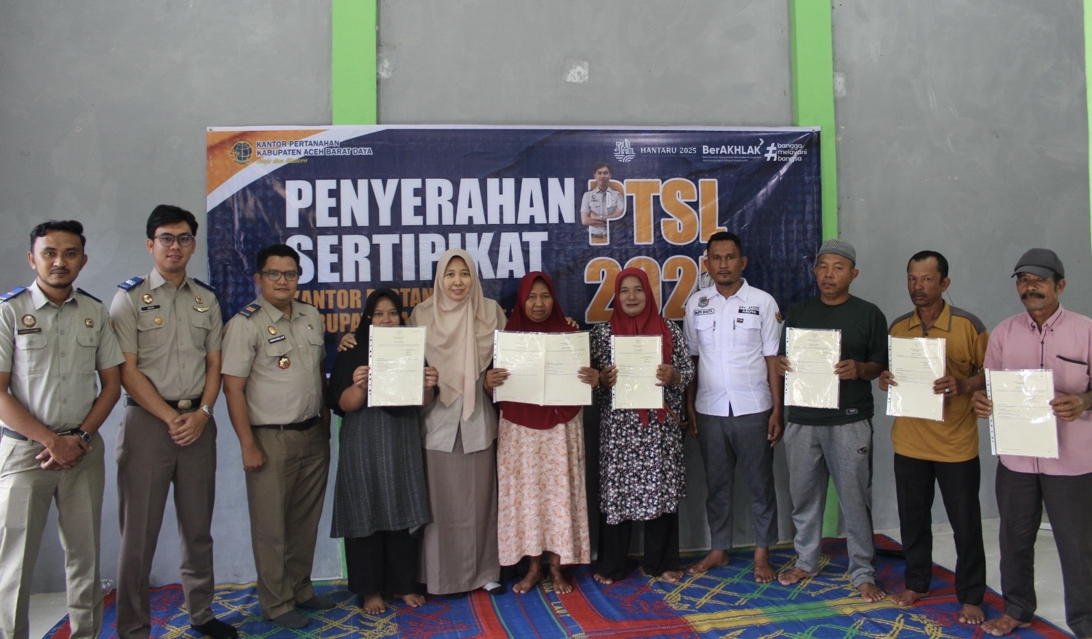 “Alhamdulillah ada 41 sertipikat yang kita serahkan kepada masyarakat yang menerima program PTSL 2025. Kegiatan penyerahan sertipikat ini juga dalam rangka HANTARU 2025, 65 Tahun Undang-Undang Pokok Agraria (UUPA),” kata Aminah.