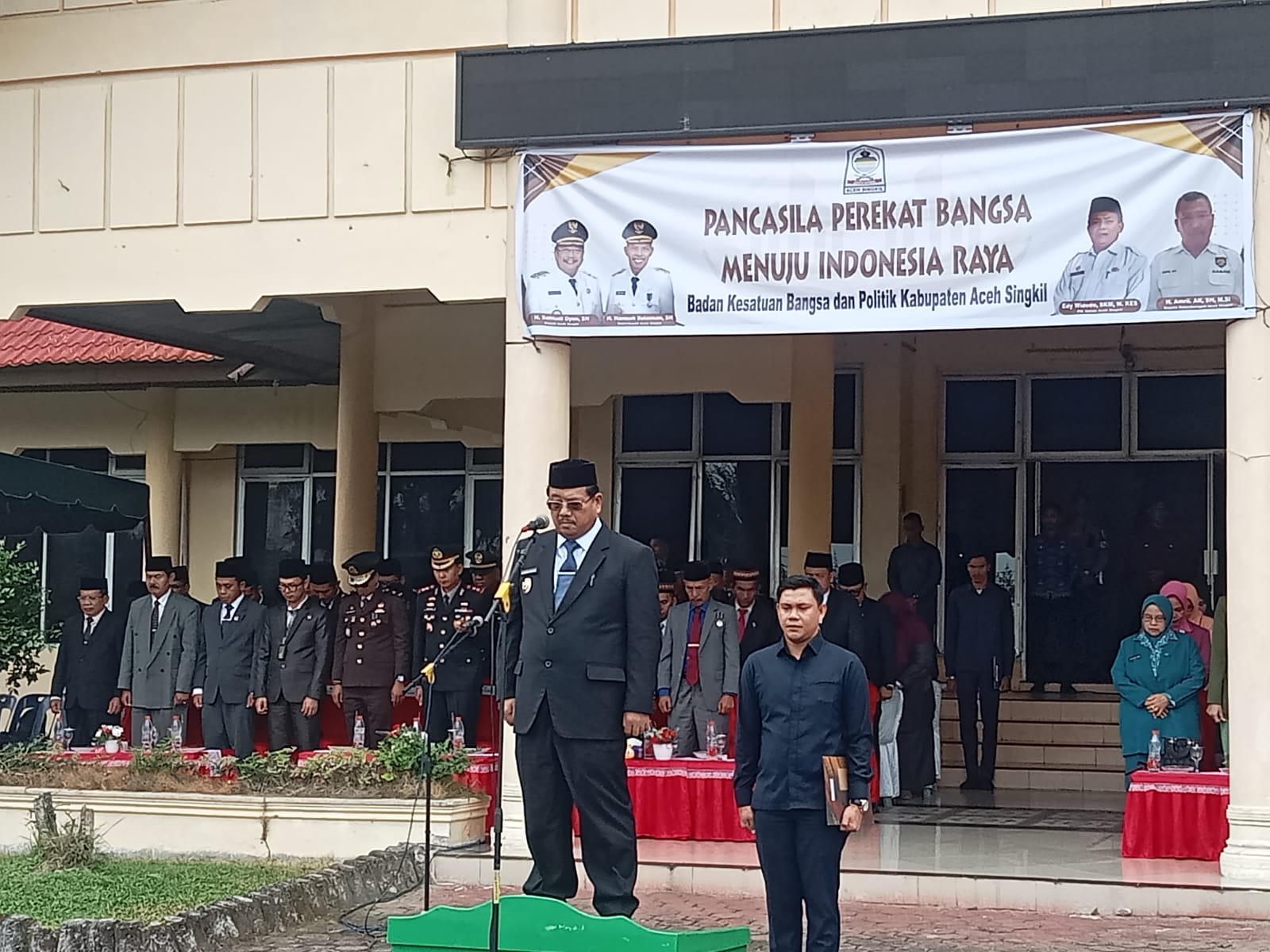 Kupasan.com – Bupati Aceh Singkil Safriadi Oyon perdana memimpin upacara peringatan Hari Kesaktian Pancasila di Halaman Kantor Bupati setempat.