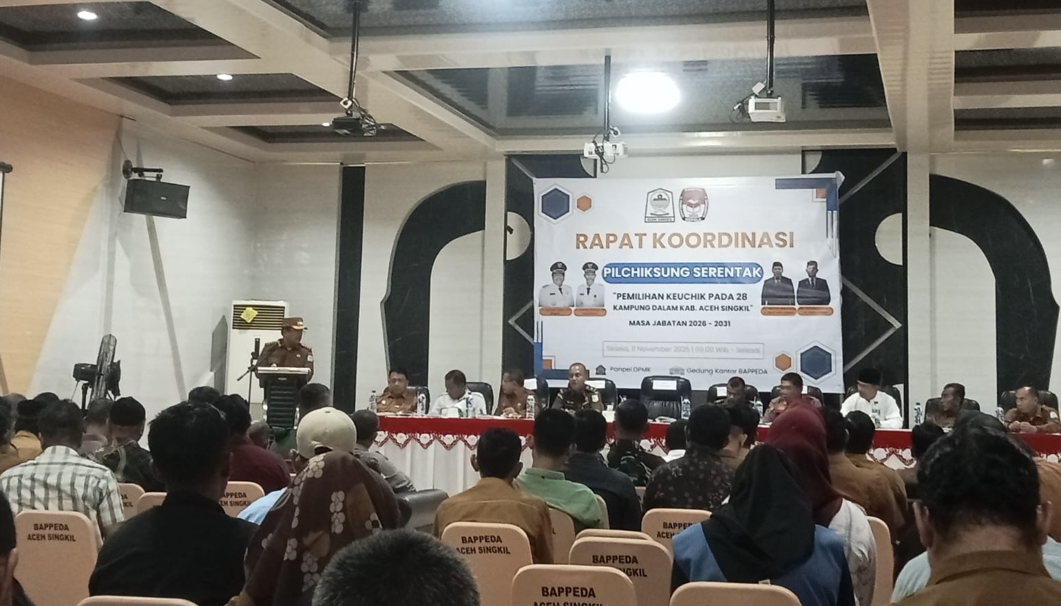 Kupasan.com – Pemerintah Kabupaten (Pemkab) Aceh Singkil menggelar Rapat Koordinasi (Rakor) dalam rangka menyukseskan Pemilihan Keuchik Serentak (Pilciksung) untuk 28 kampung masa jabatan 2026–2031. Kegiatan tersebut berlangsung di Aula Bappeda Pulo Sarok, Selasa (11/11).
