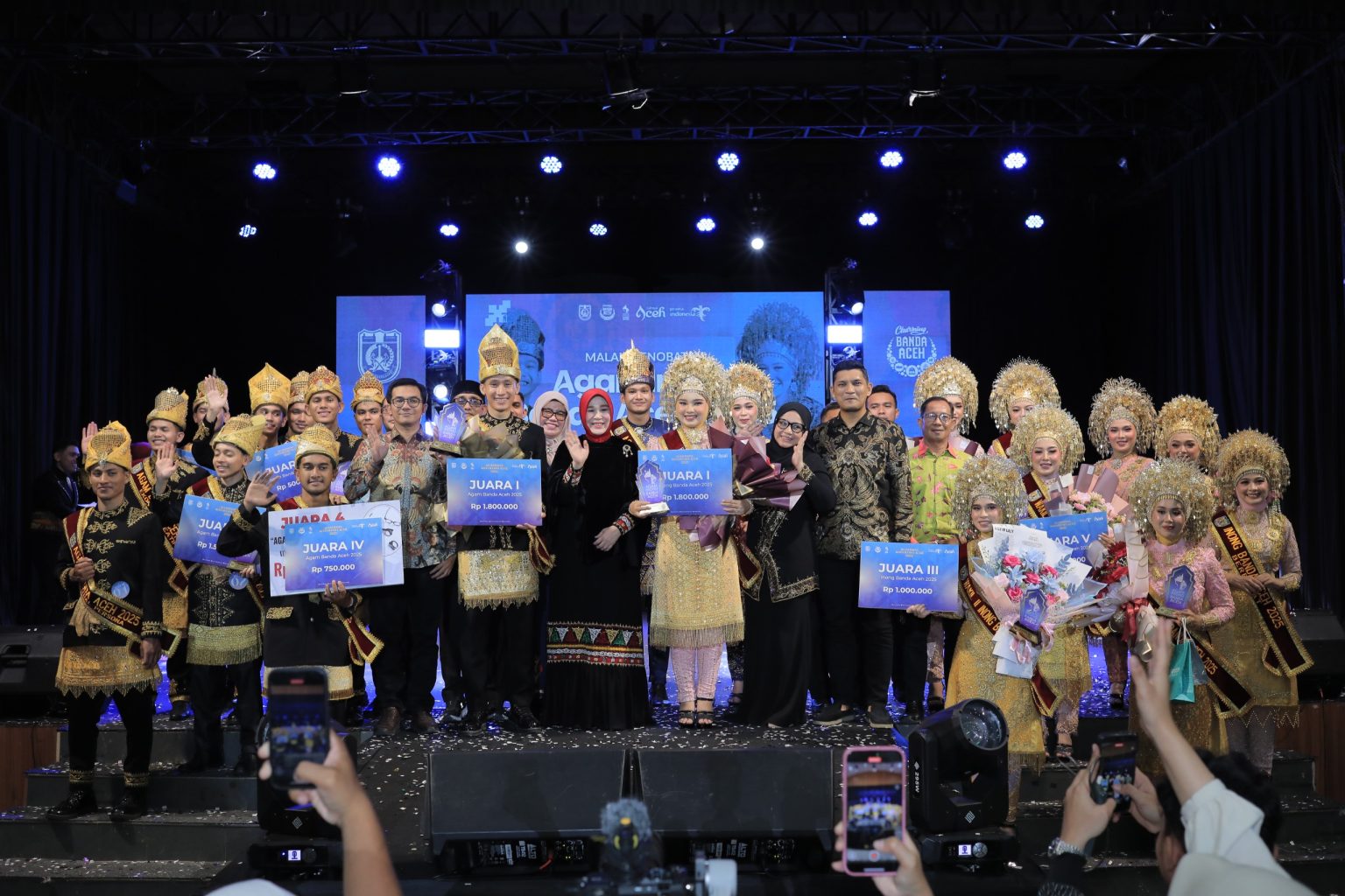 Kupasan.com – Malam Grand Final penganugerahan Agam Inong Kota Banda Aceh 2025 berlangsung meriah. Sorotan lampu dan gemerlap malam menambah kesan indah di setiap sudut gedung theater indoor Taman Budaya , Senin (10/11) malam.